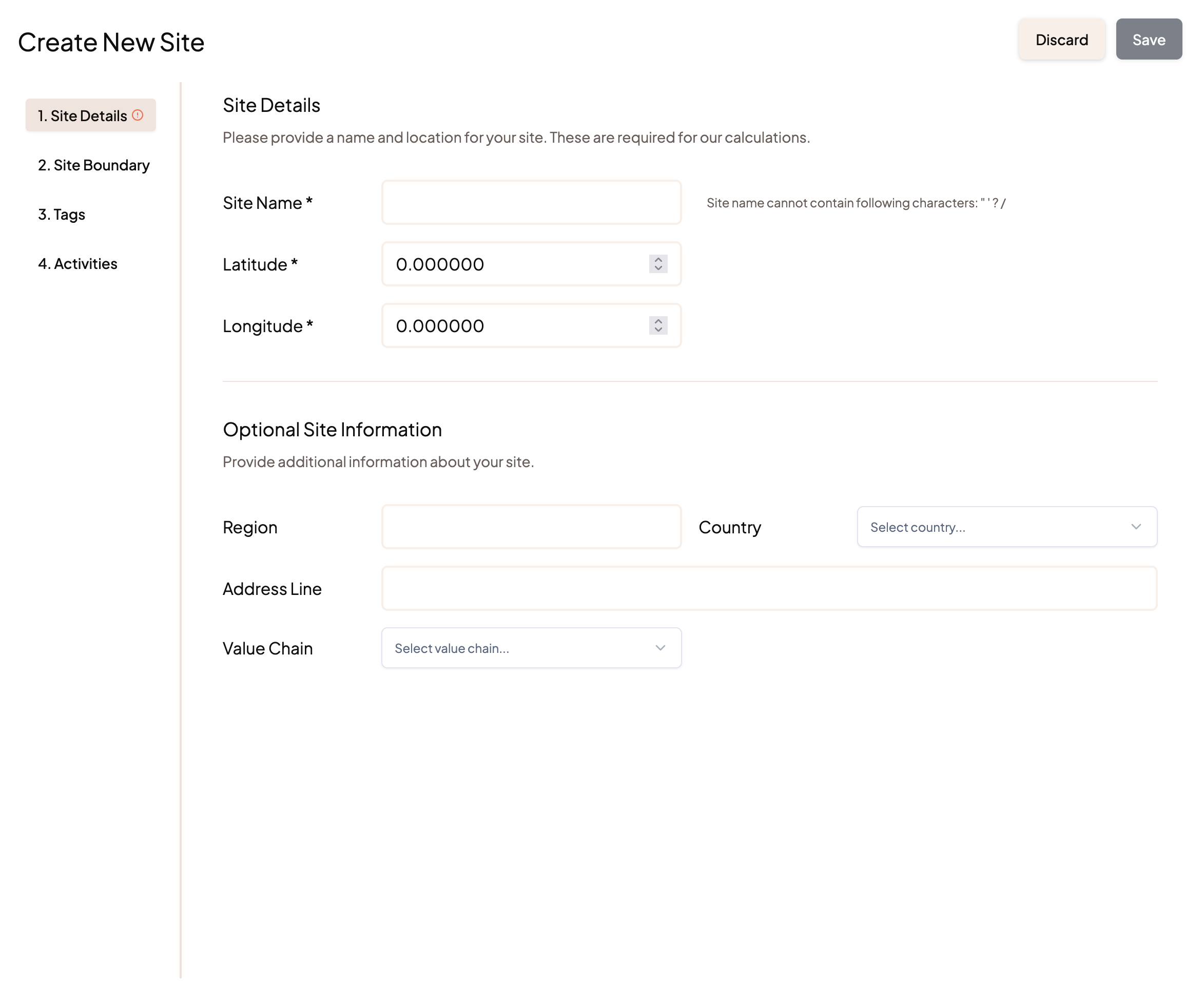 Next, add your site's details. You'll need to give your site: